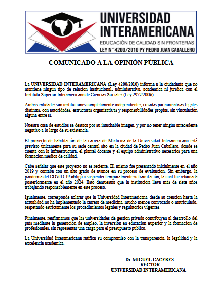 Comunicado de la Universidad Interamericana a la Opinión Pública: Aclaraciones Importantes