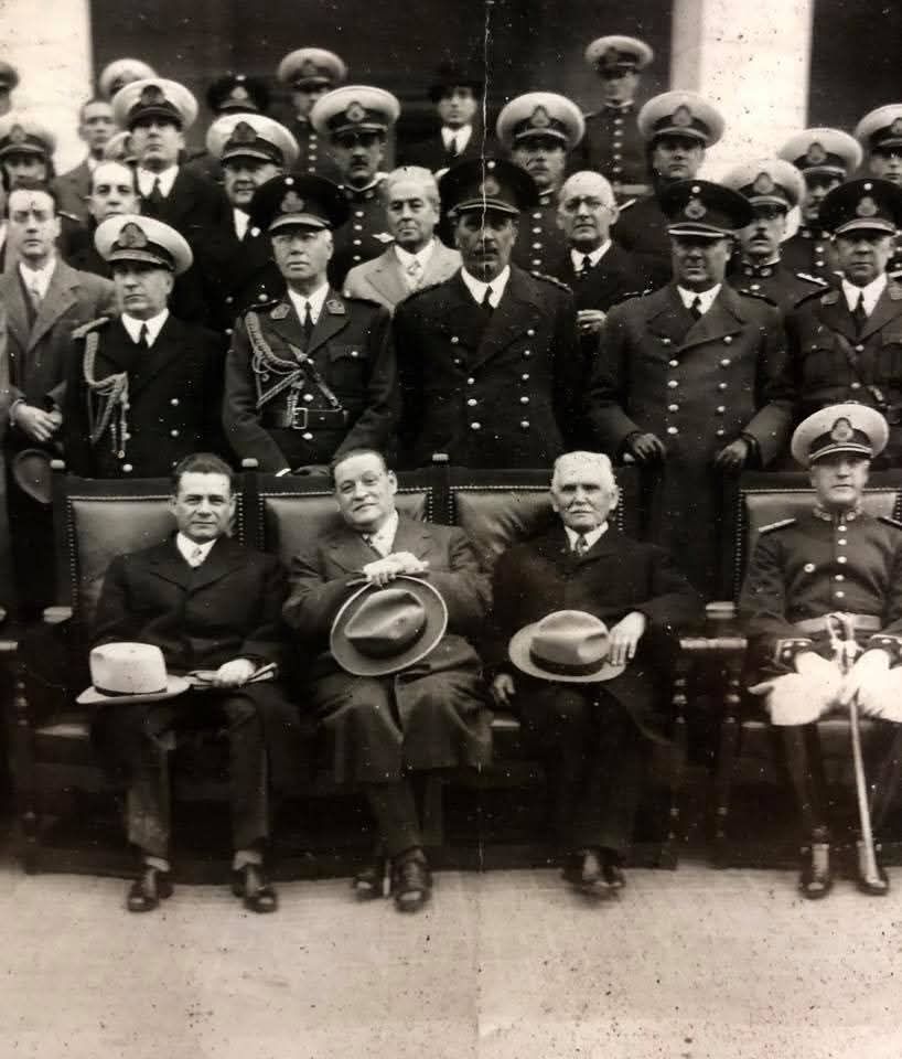 IMAGEN: el presidente general José Félix Estigarribia (sentado a la izquierda) en visita oficial a Buenos Aires es recibido por el presidente de la República Argentina doctor Roberto Marcelino Ortiz (sentado en el centro) y secundado por su vicepresidente Ramón Castillo (sentado a su derecha) y el ministro de Marina almirante León Lorenzo Scasso (sentado extrema derecha), secundados por miembros del gabinete civil y jefes militares argentinos / Archivo: Ministerio de Defensa Nacional (Paraguay) / Eduardo Nakayama
